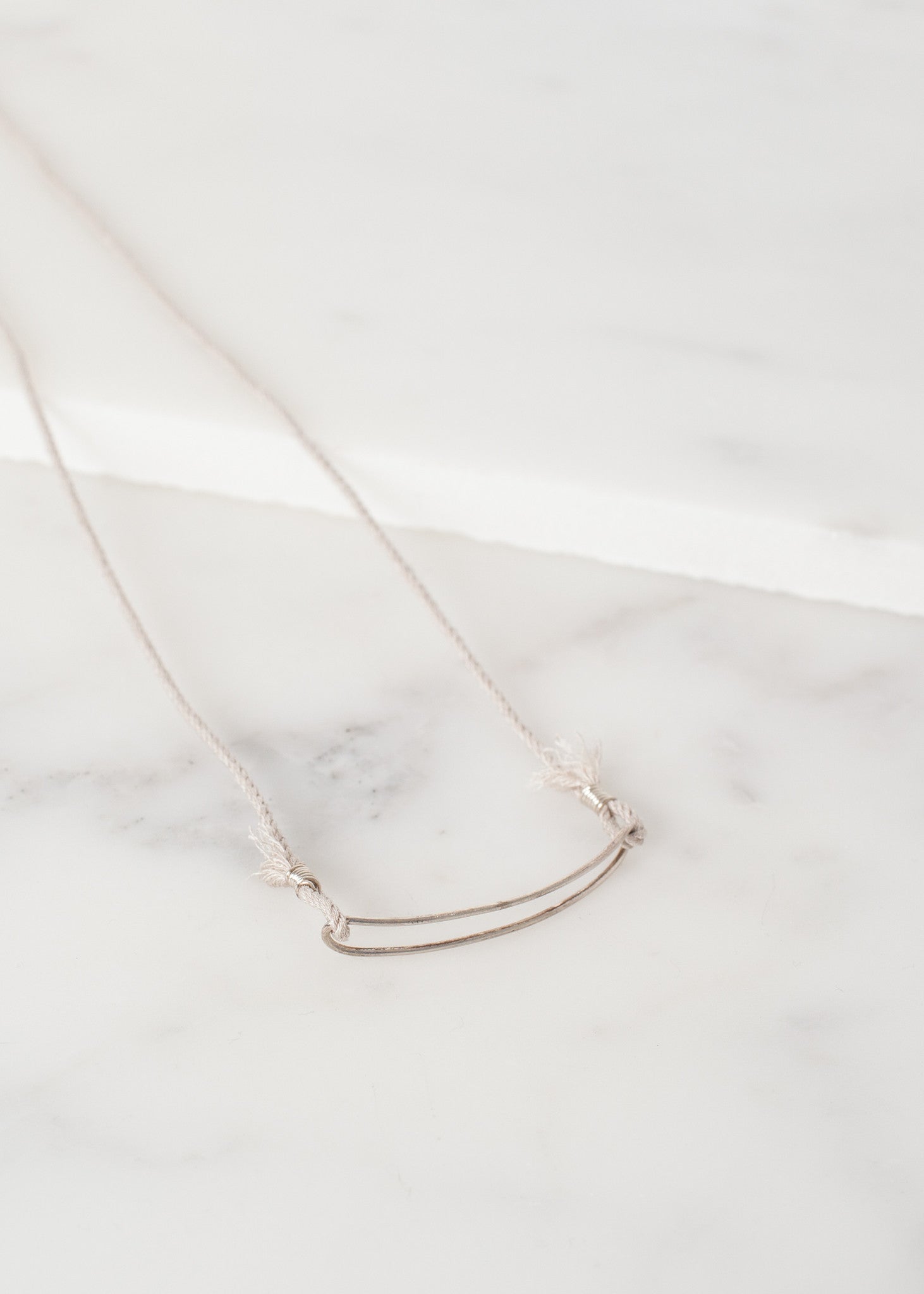 Rustic yet lovely, 1-100 jewelry gives an organic feel while maintaining an understated elegance. Bracelet 85 draws attention to the pendant with its silk wrap rope. Color Silver.